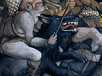 Warg-Dark WolvesWargs are a sort of wolves that often ally with orcs when they raid and plunder their surroundings. Many wargs died in the battle of the five armies (The Hobbit) and they are still not as numerous as in the old days. They use a verbal language to communicate. An orc on top of a warg is a lethal combination.