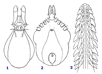 1. Body with 5 posterior brushes of hairs (sea bird habitats) > I. uriae